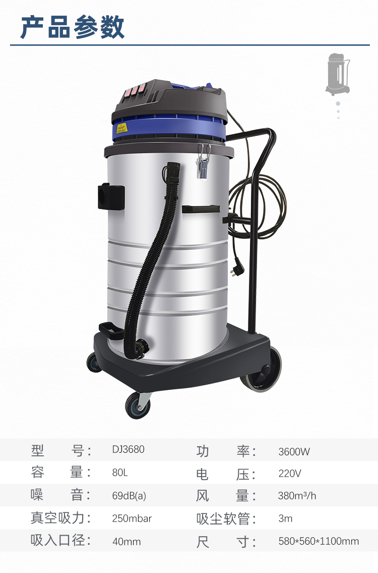 DJ3680 鼎潔盛世工業(yè)吸塵器80L干濕兩用吸塵器吸塵吸水機
