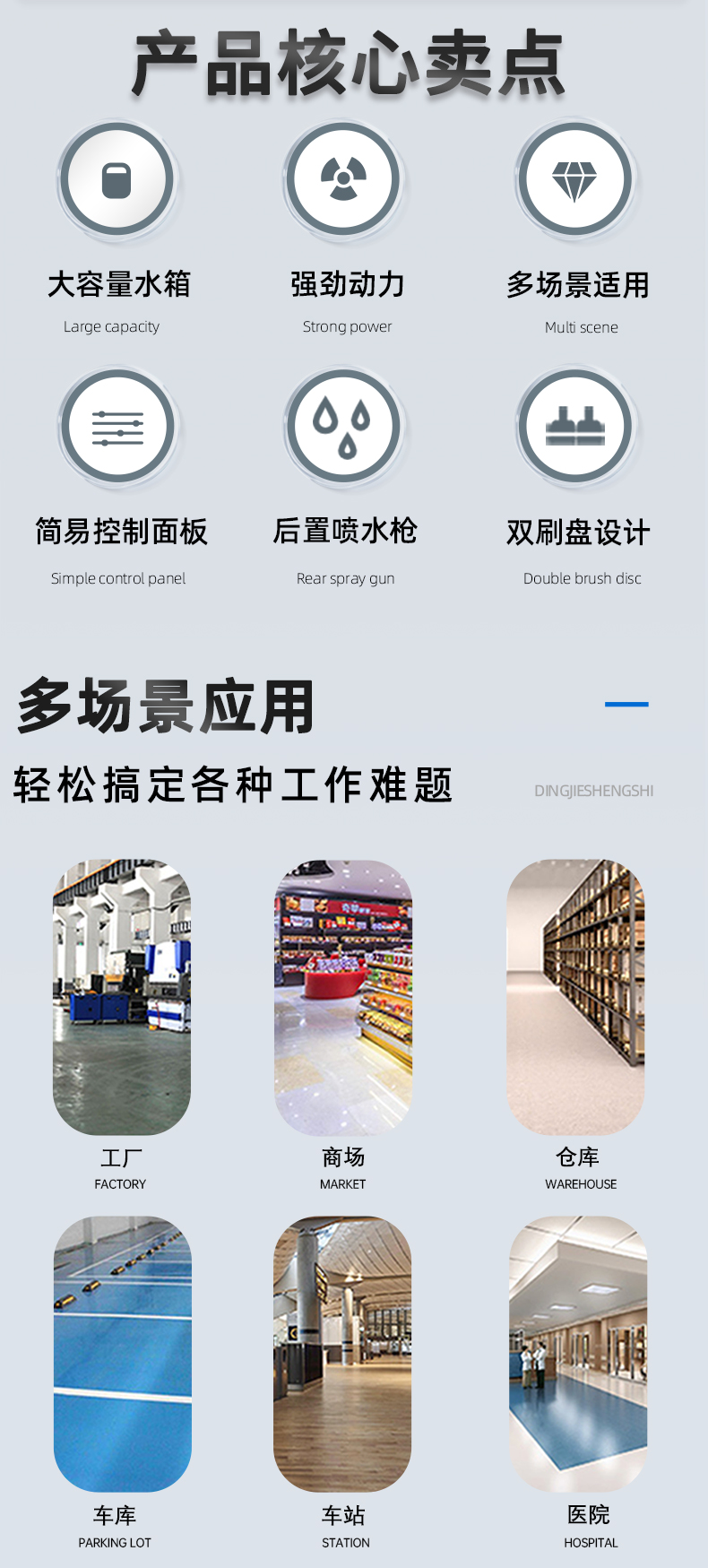 適用工廠車間,學(xué)校,醫(yī)院等,淄博洗地機 解決水泥地,環(huán)氧地坪,瓷磚等地面